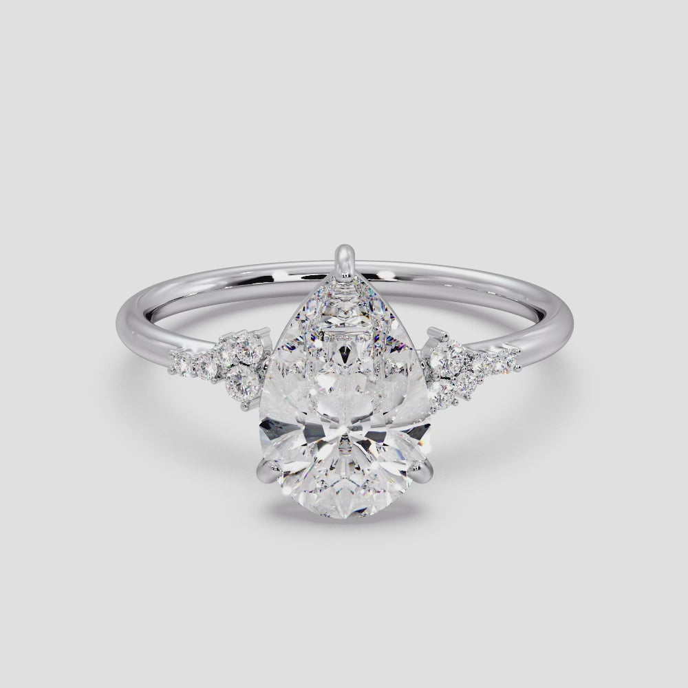 Everly Cluster 3 Carat Lab Grown Pear Diamond Engagement Ring