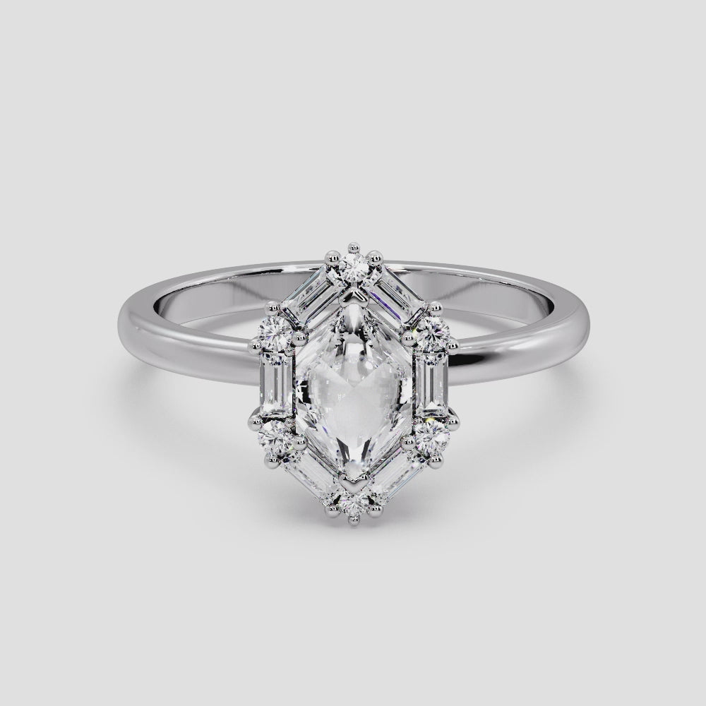 Gemnomads Bridal Collection: Embellished with dazzling round brilliant, hexagon and baguette cut diamonds, this stunning cluster engagement ring adds an instant dose of drama to everything in your wardrobe.