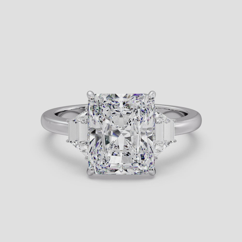 Three Stone Lab Grown 6 Carat Radiant Cut Diamond Engagement Ring