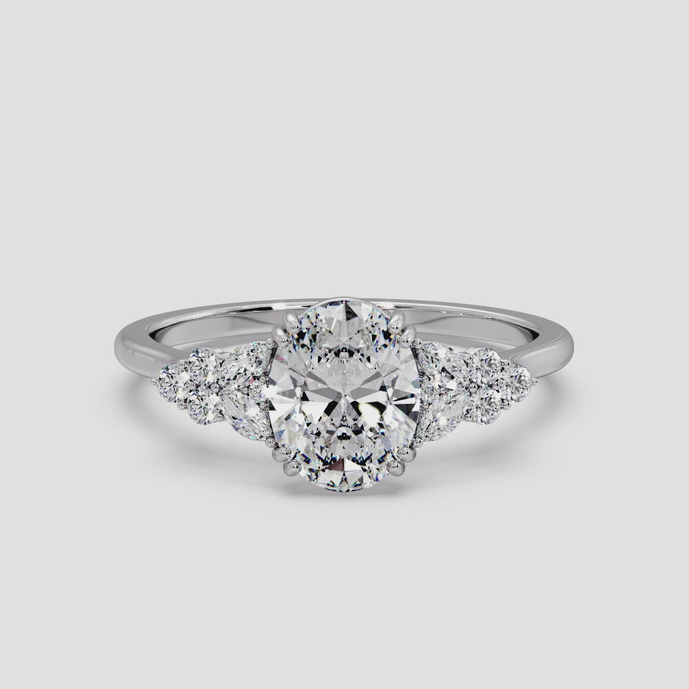 Lynn Vintage Cluster Oval Natural Diamond Engagement Ring - GEMNOMADS
