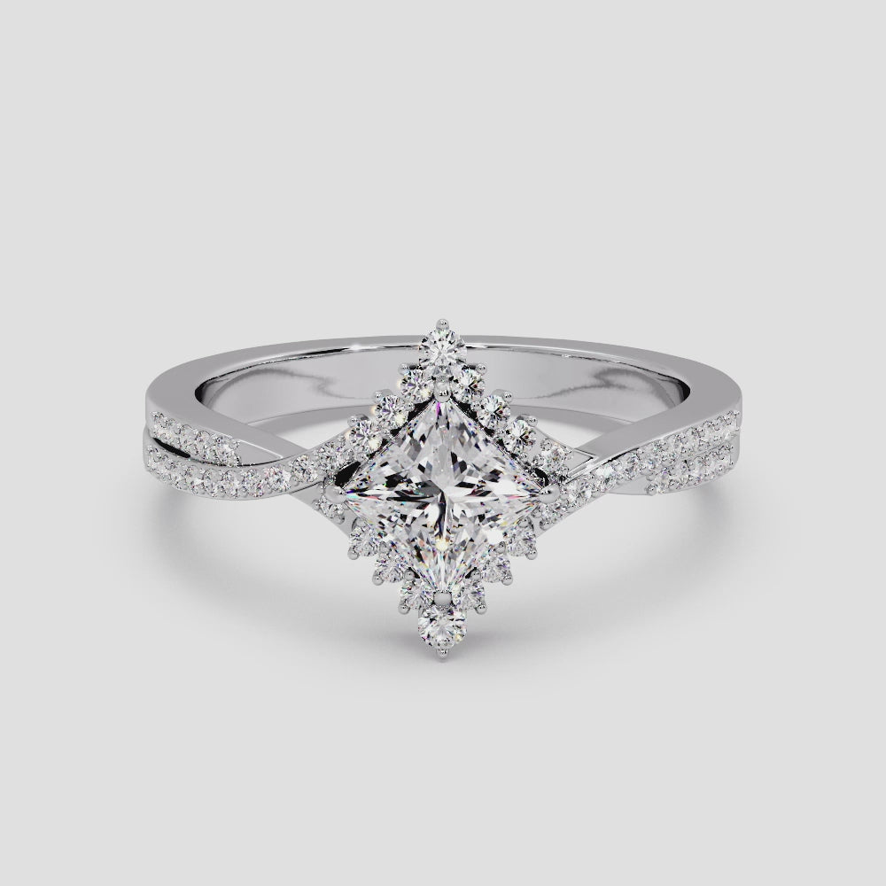 Gemnomads luxury collection: Dress up your digits with this gorgeous princess diamond engagement ring featuring diamond halo details, adding a feminine flair to your outfit. Diamonds run halfway through the band.