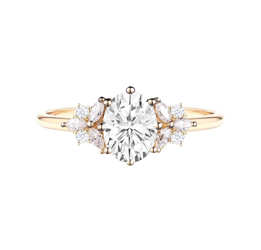 Gemnomads Bridal Collection: Embellished with dazzling marquise, round brilliant cut and oval center diamonds, this stunning cluster engagement ring adds an instant dose of drama to everything in your wardrobe. This ring features a basket set center diamond and delicate prongs.