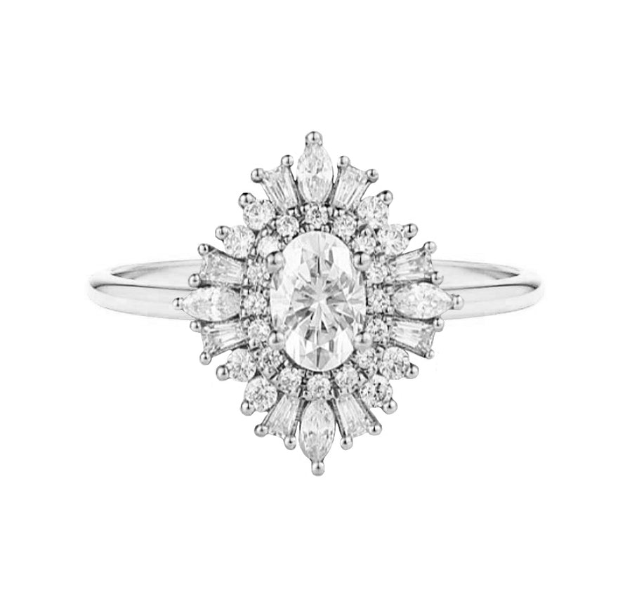 Ballerina Art Deco Oval Lab Grown Diamond Engagement Ring