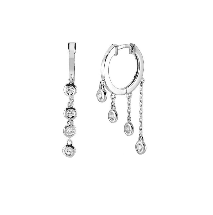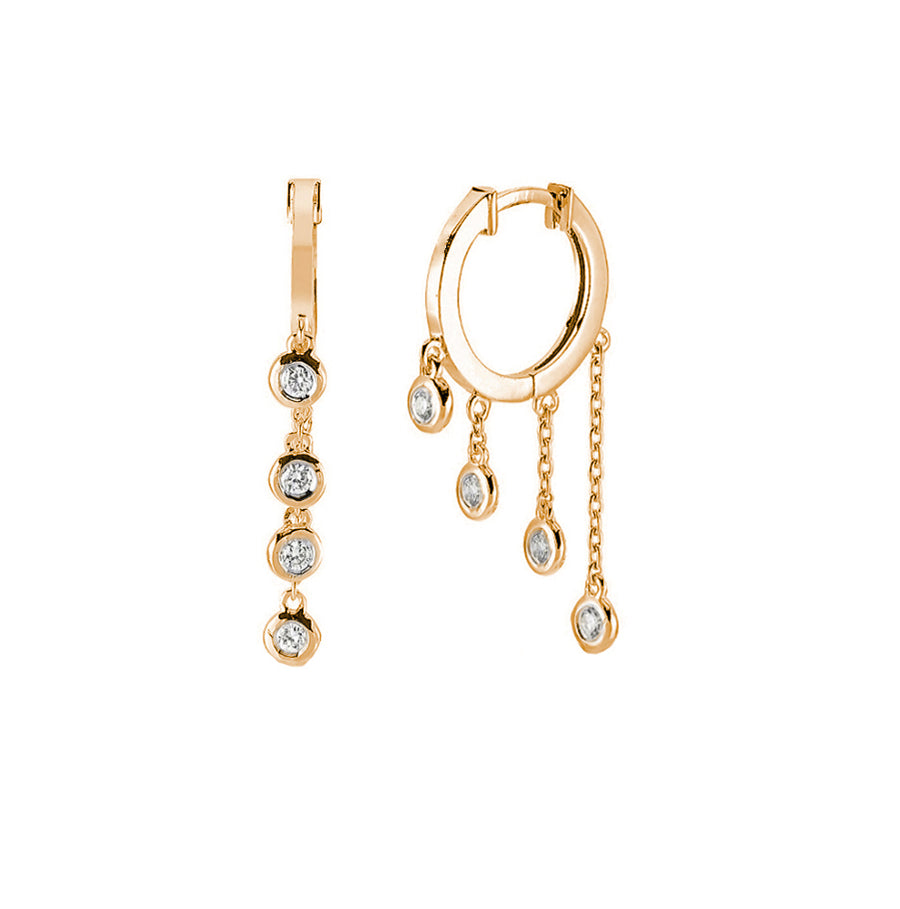 Dangling Diamond Bezel Hoop Earrings in 14K Gold