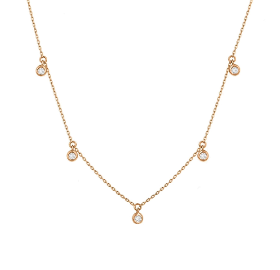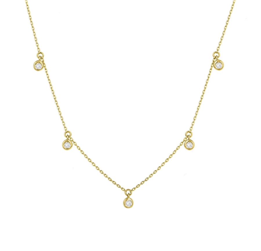 Gemnomads curated designer collection: Dress to impress with diamond bezel station necklace crafted in 14K solid gold. Style tip: Layer with other delicates for added drama.
