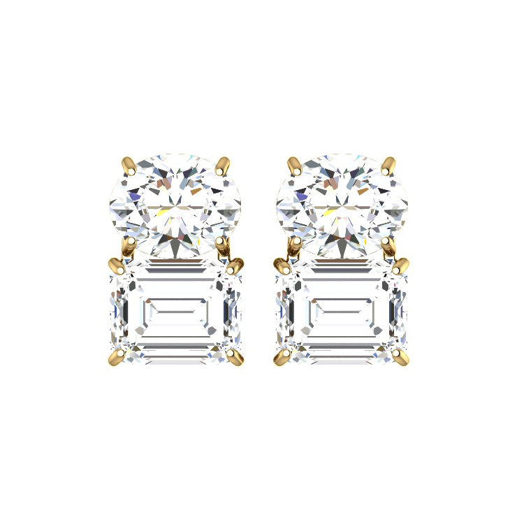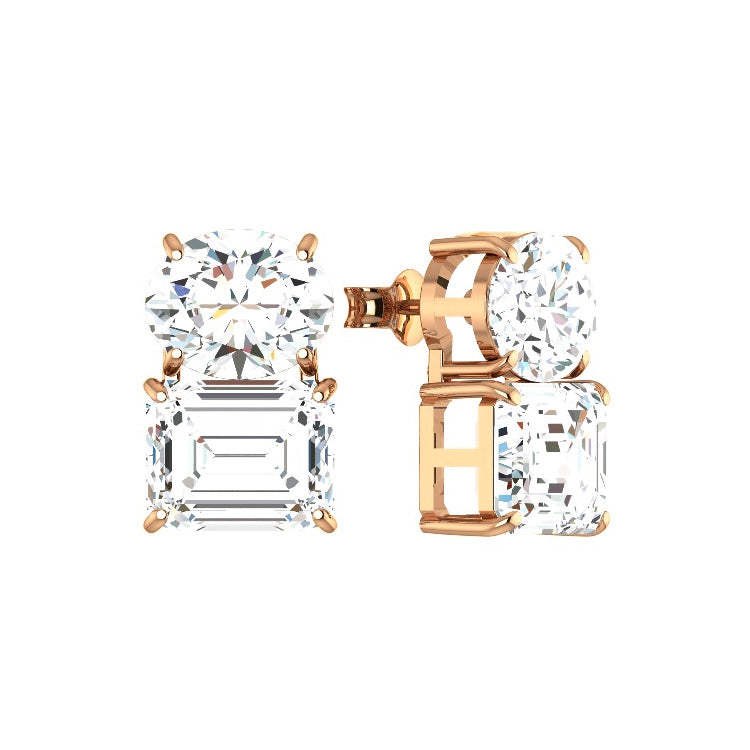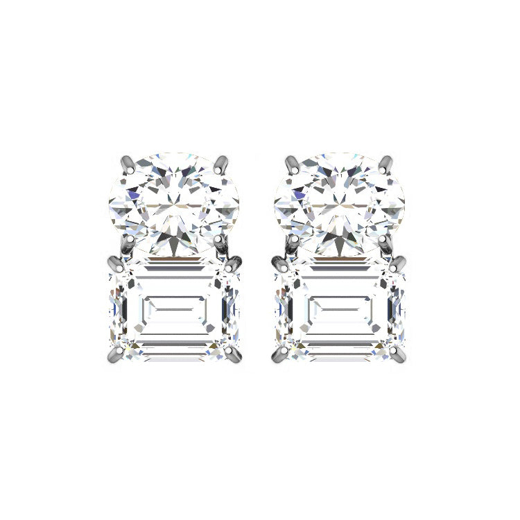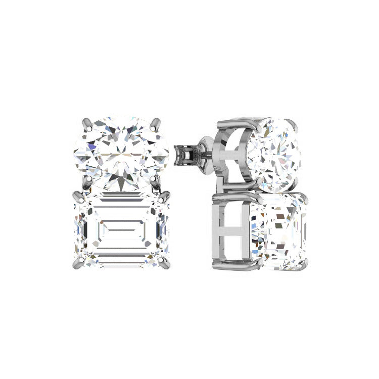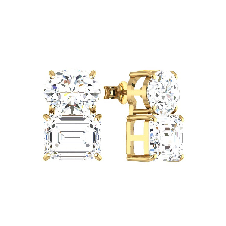 These stunning earrings are studded with IGI certified lab grown white diamonds. Diamond size: oval cut 1.5 carat, emerald cut 2.5 carat. Diamond color: F-G. Diamond clarity: VS1-VS2. Shape & Cutting Style: oval and emerald. Crafted in 14K gold. Back finding: push back. Designed in Austin, Texas. Certified by IGI.