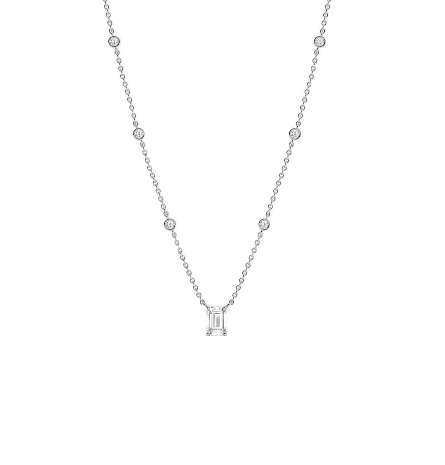 Emerald Cut Lab Diamond Station Necklace in 14K Gold