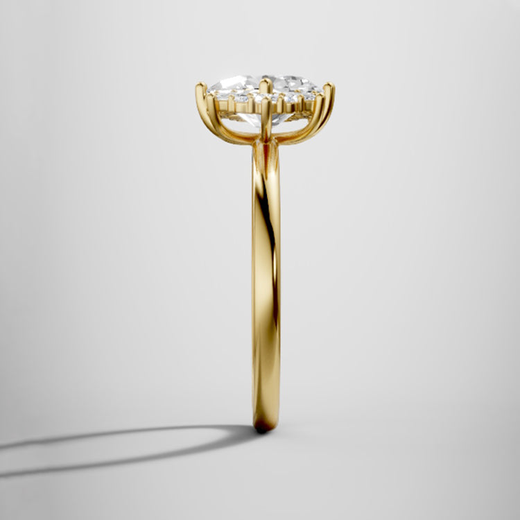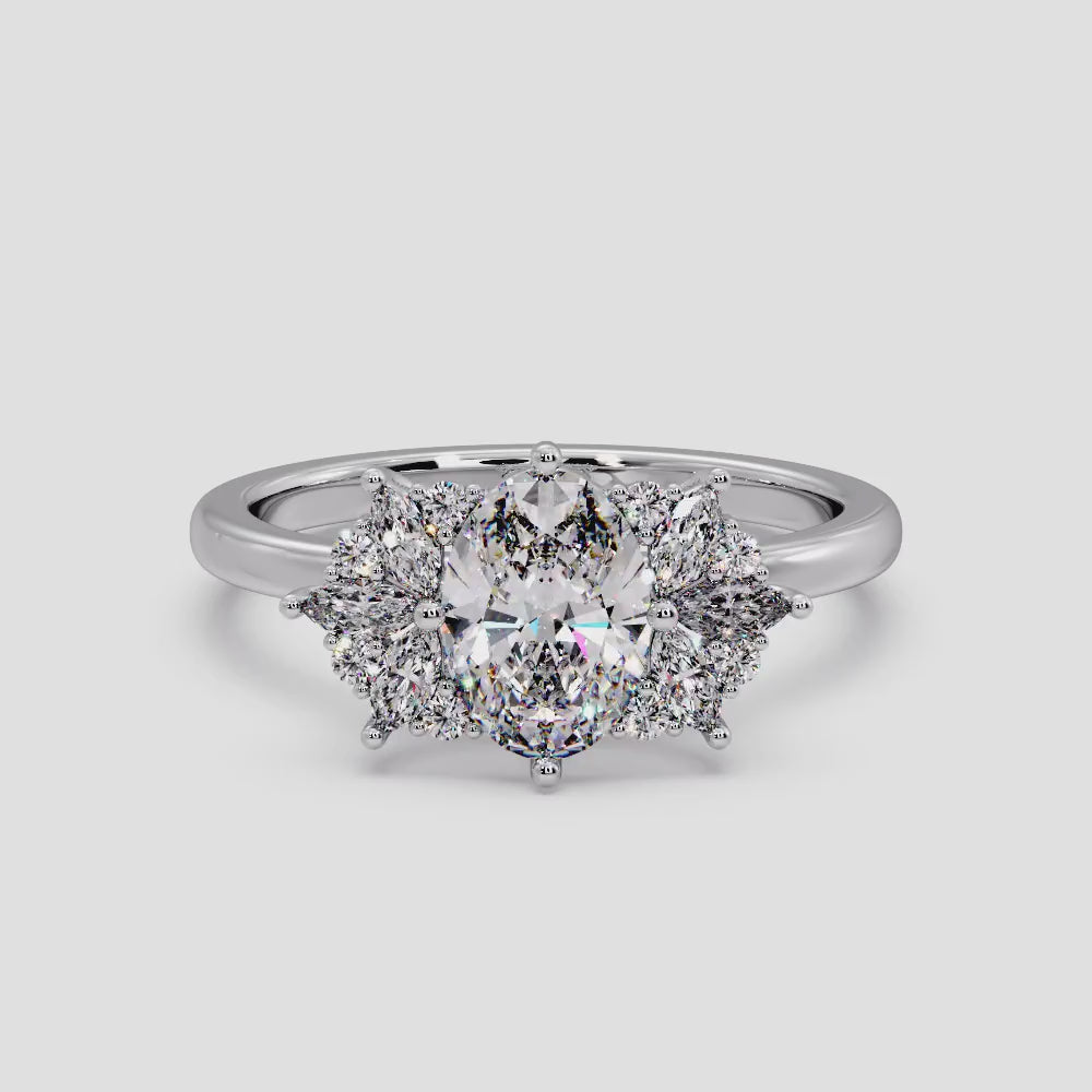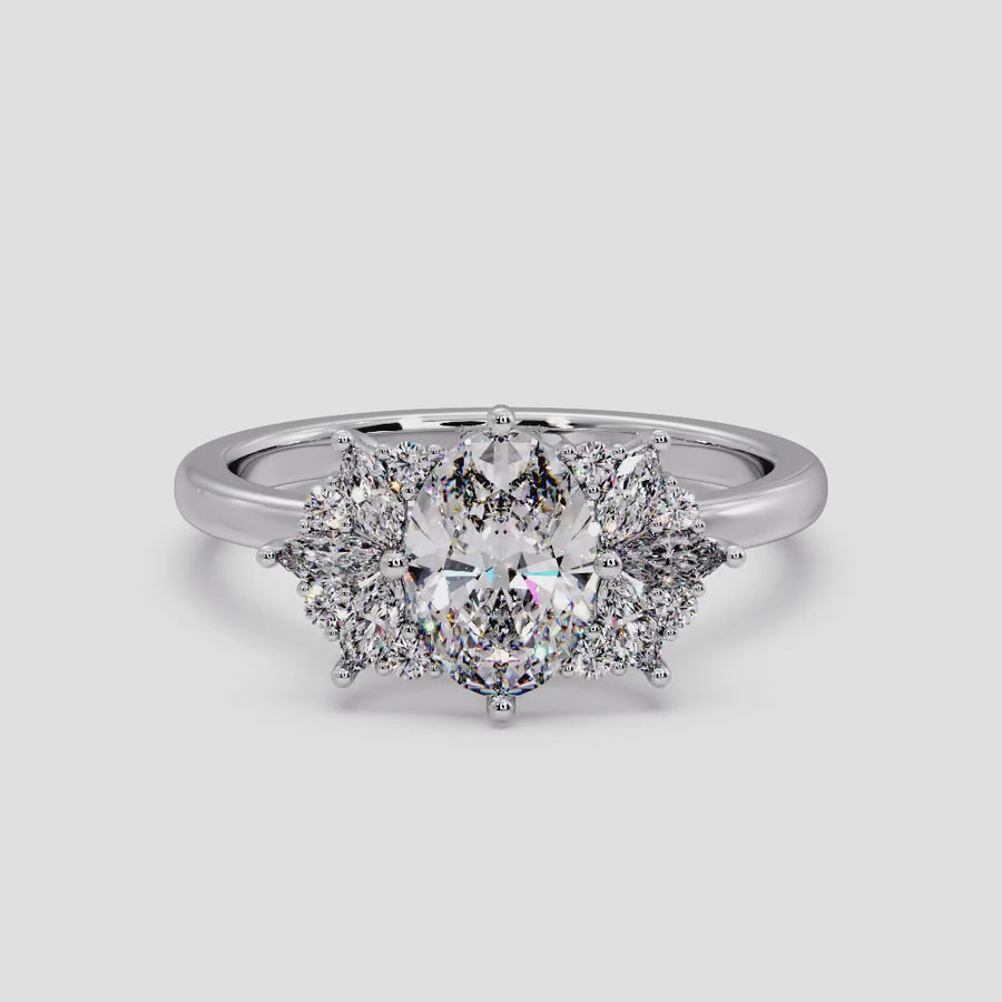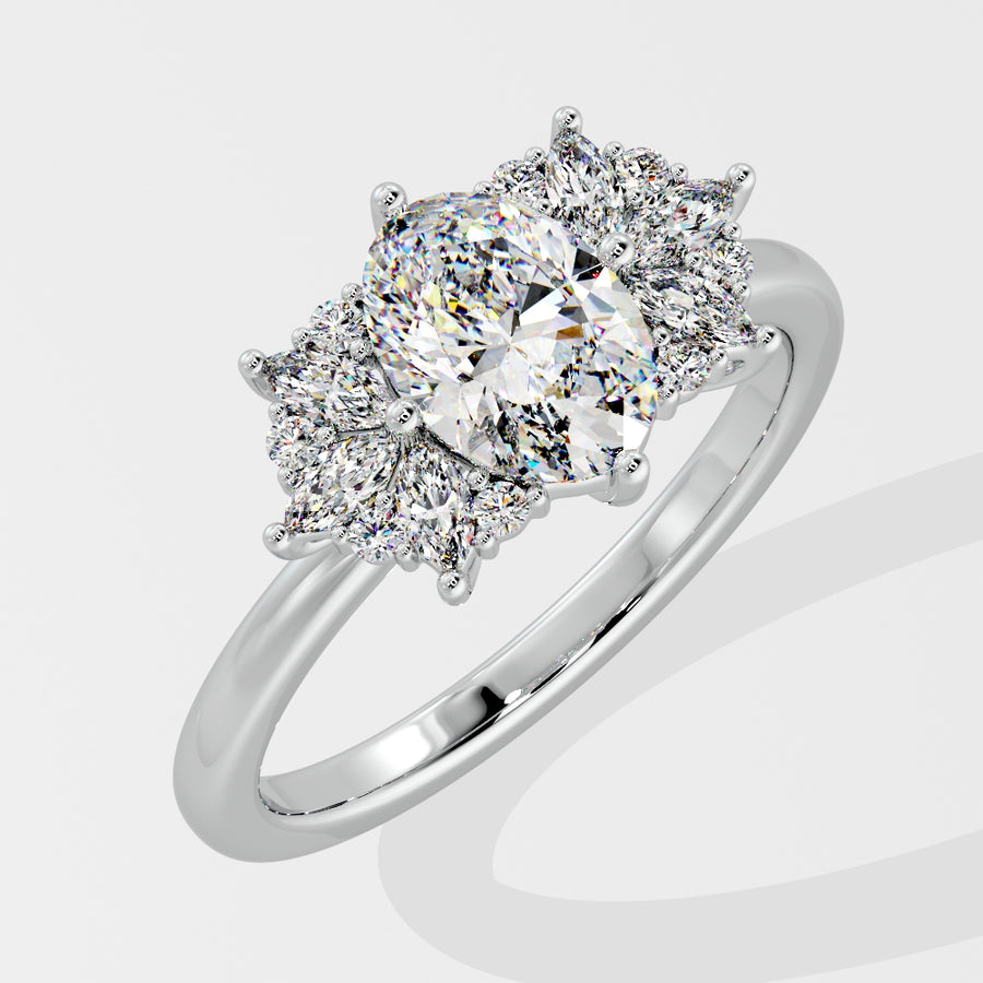 Samantha Floral Cluster Natural Oval Diamond Engagement Ring in 18K Gold