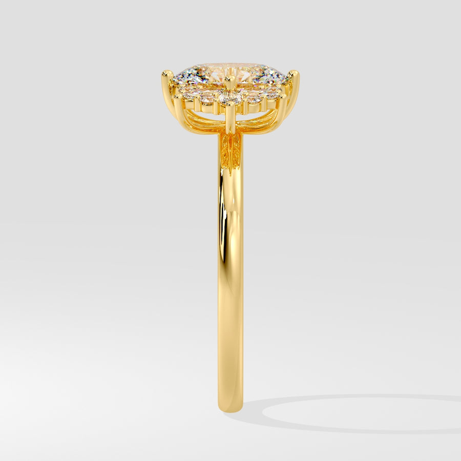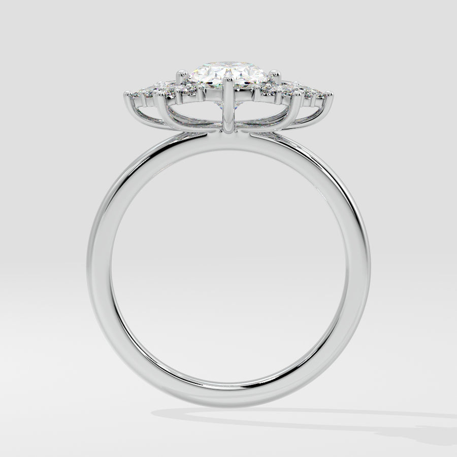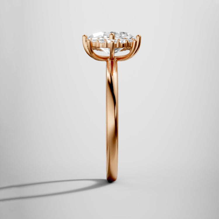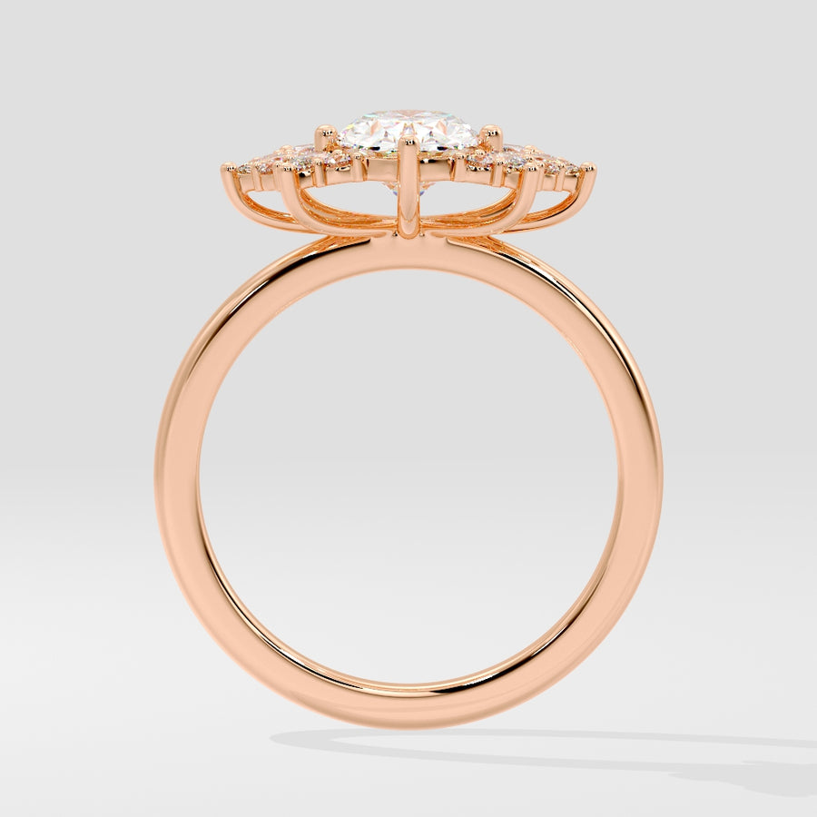 Samantha Floral Cluster Natural Oval Diamond Engagement Ring in 18K Gold