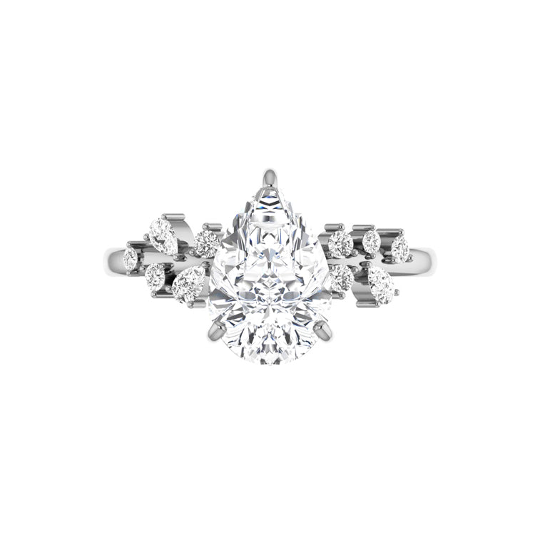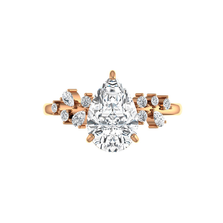 Gemnomads Bridal Collection: Embellished with dazzling round brilliant and pear cut diamonds, this stunning engagement ring adds an instant dose of drama to everything in your wardrobe.Â