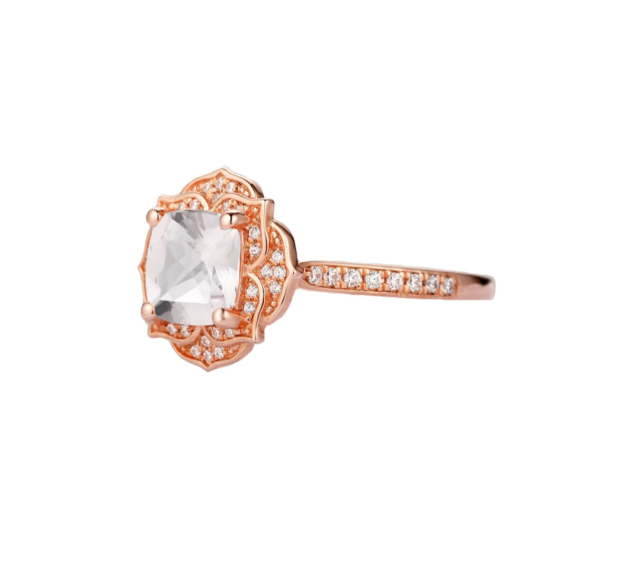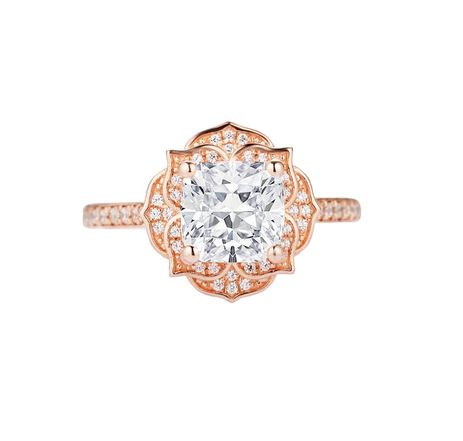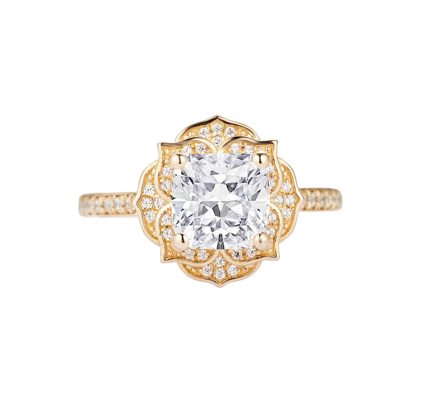 Peony Cushion Cut Lab Grown Diamond Engagement Ring in 18K Gold