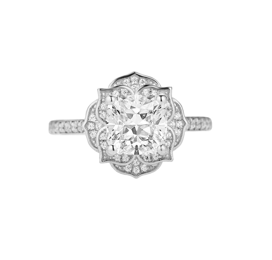 Gemnomads Bridal Collection: Embellished with dazzling cushion cut and round diamonds, this gorgeous floral engagement ring, adds an instant dose of drama to everything in your wardrobe.Â