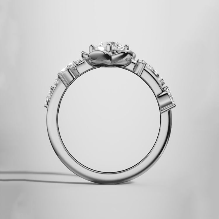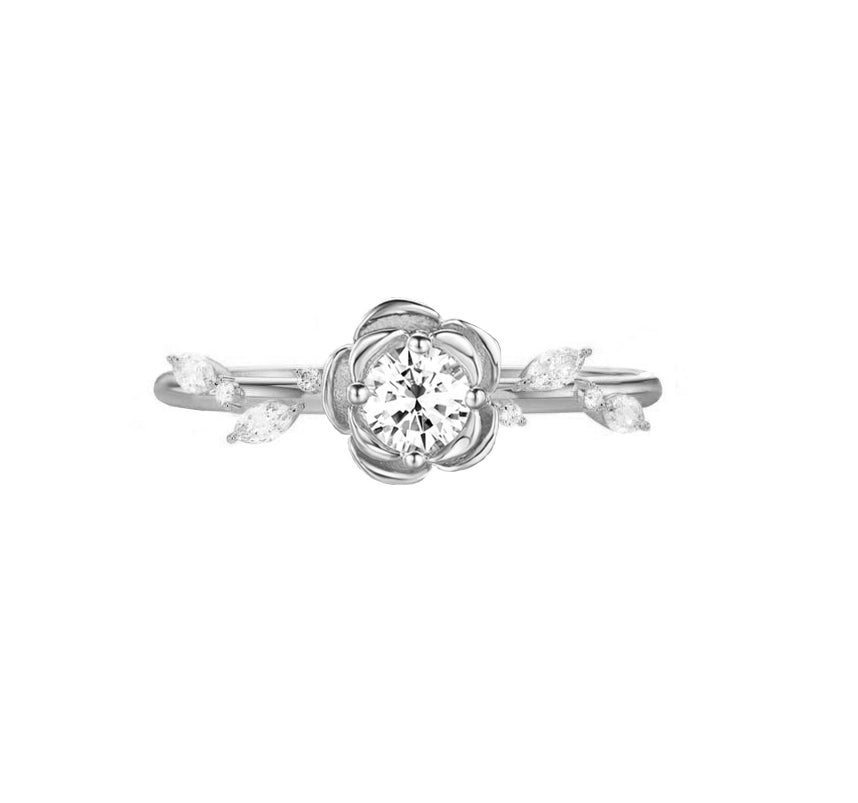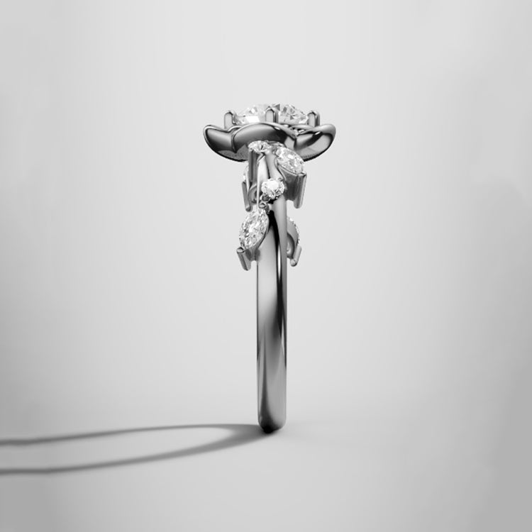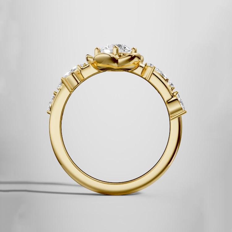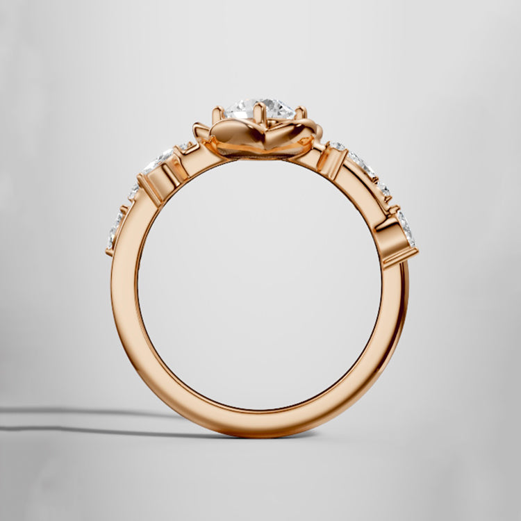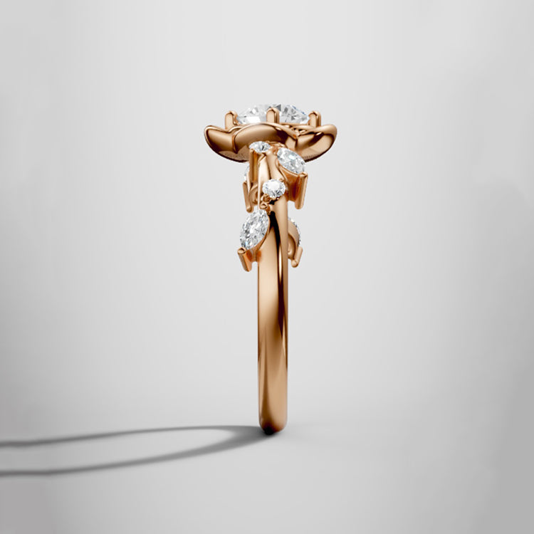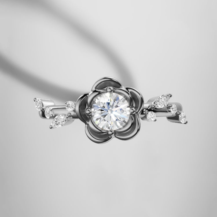 Rose Flower Round Lab Grown Diamond Engagement Ring in 18K Gold