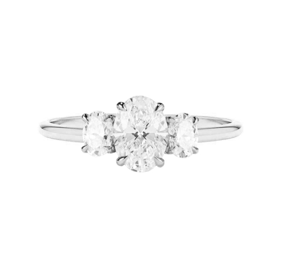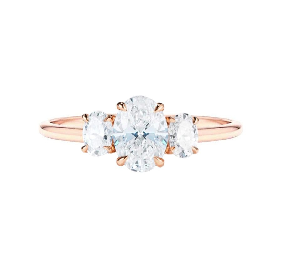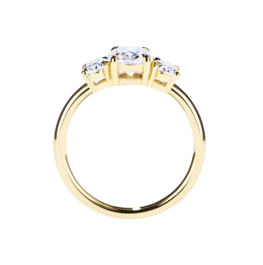 Three Stone Natural Oval Diamond Engagement Ring in 18K Gold