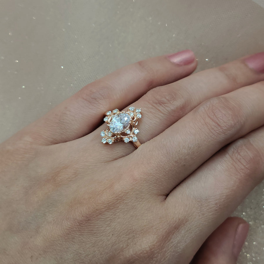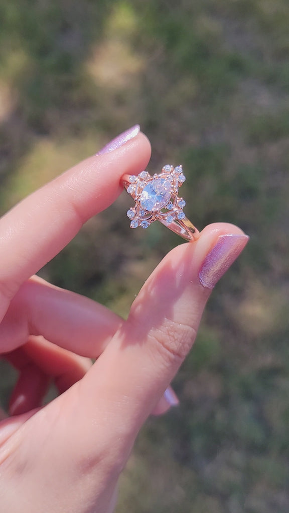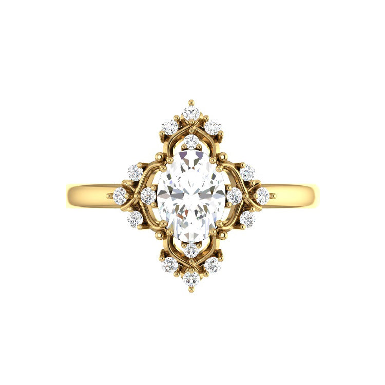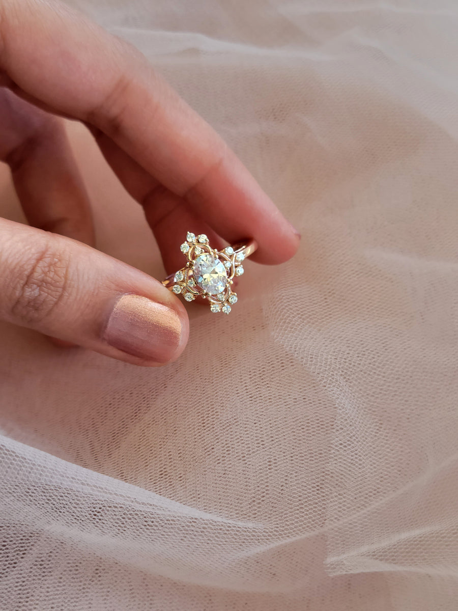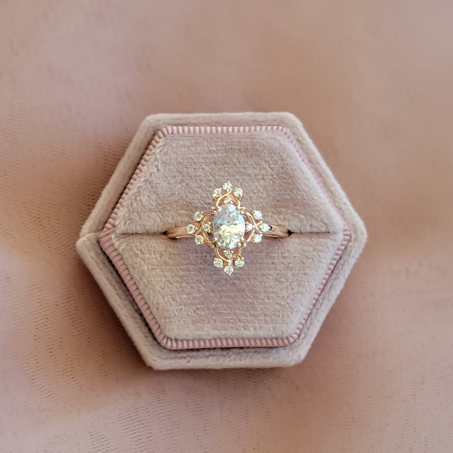 Vintage Inspired Lab Grown Oval Engagement and Wedding Ring Set